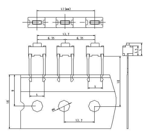|  | | 型號規(guī)格:TS36HSMD系列 | 中文命名:3x6長二腳編帶輕觸開關 |