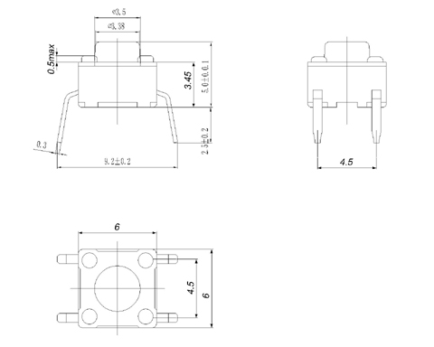 |  | | 型號規(guī)格:TS66HM系列 | 中文命名:6X6四腳直插型輕觸開關 |