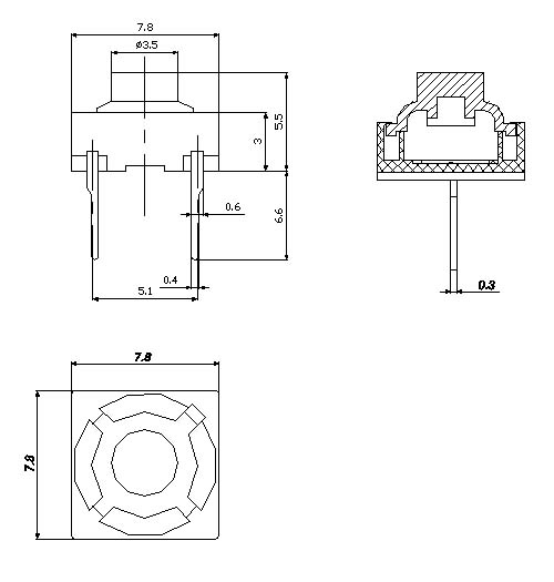 |  | | 型號規(guī)格:TSX88HN系列 | 中文命名:8*8導電膠二腳輕觸開關 |