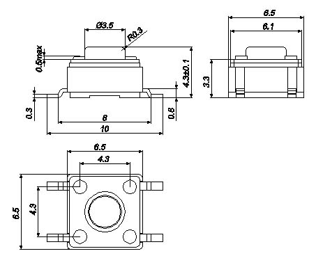 |  | | 型號(hào)規(guī)格:WSXTP6543系列 | 中文命名:橡膠藍(lán)帽貼片型防水輕觸開(kāi)關(guān) |