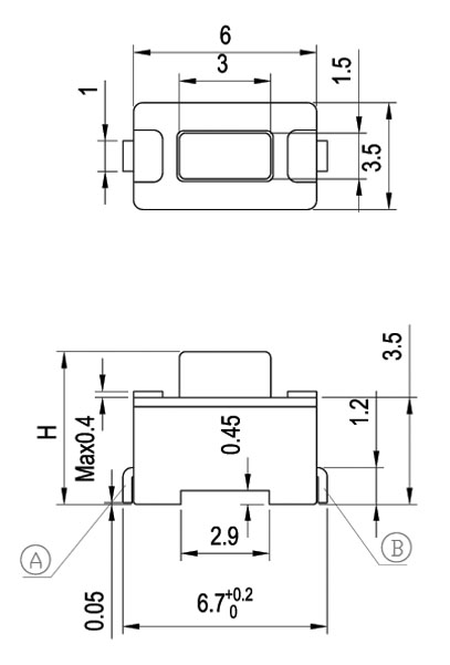 |  | | 型號規(guī)格:TS36HND系列 | 中文命名:3*6輕觸開關(guān) |