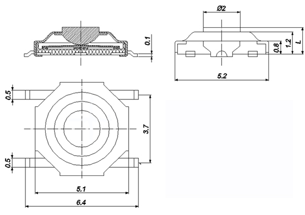 |  | | 型號規(guī)格:TS44H系列 | 中文命名:4*4拉伸貼片防水型輕觸 |
