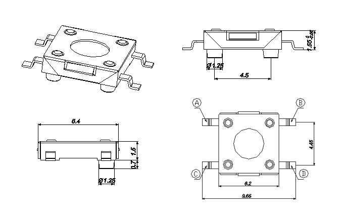 |  | | 型號規(guī)格:TSTP015系列 | 中文命名:1.5超薄定位平座輕觸開關(guān) |