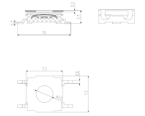 |  | | 型號規(guī)格:WSTP027系列 | 中文命名:藍(lán)防水無帽貼片型輕觸 |