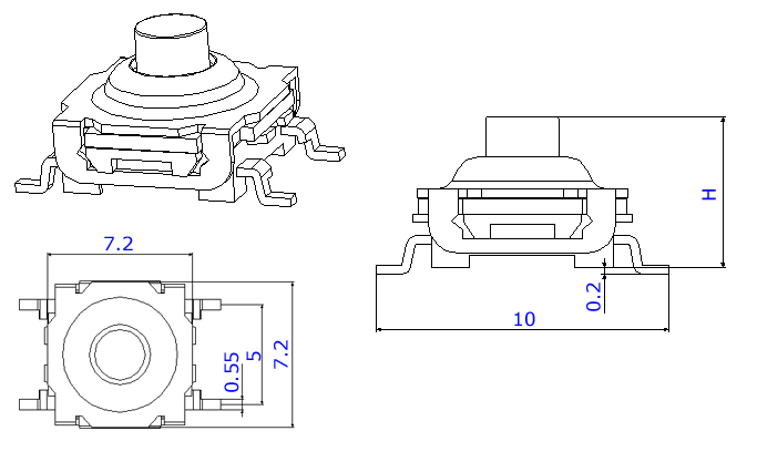 |  | | 型號(hào)規(guī)格:WSTP050系列 | 中文命名:黑防水貼片輕觸 |